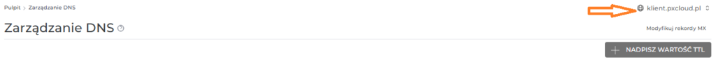 Następnie upewnij się że edytujesz odpowiednią domenę, w prawym górnym rogu masz możliwość wybrania odpowiedniej z menu rozwijanego.