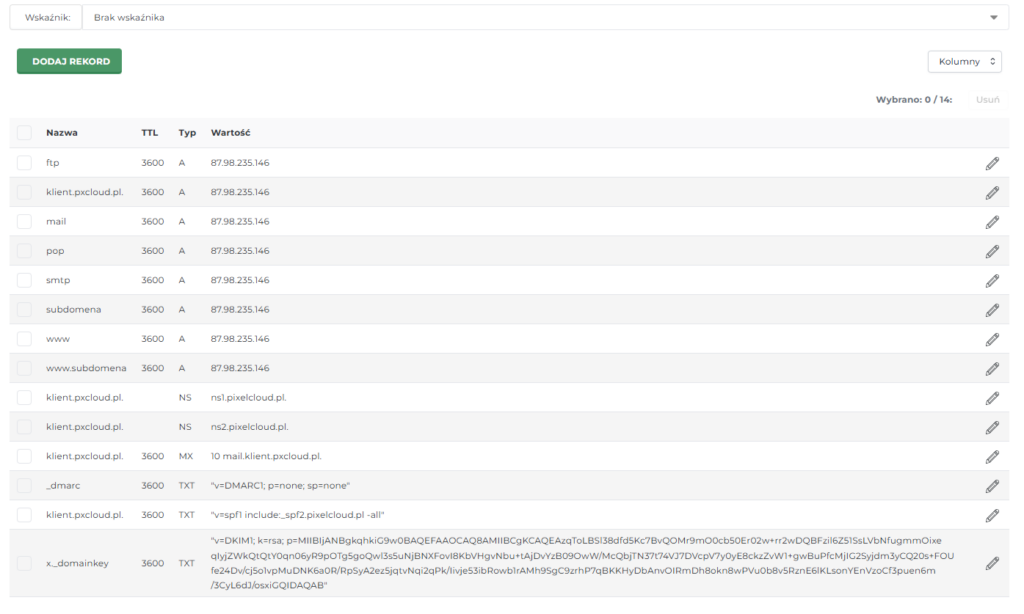 Zasada modyfikacji jest taka sama dla wszystkich rekordów w strefie i przebiega w dokładnie taki sam sposób, natomiast jeśli napotkasz jakieś trudności to nie krępuj się zwrócić do nas o pomoc. Jesteśmy tu dla Ciebie! 🙂