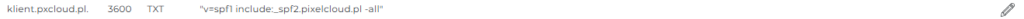 Modyfikację oprzemy na przykładzie rekordu SPF używanego do autoryzacji wysyłki poczty z Twojej domeny. Jeśli korzystasz z zewnętrznej usługi mailingowej do wysyłki newsletterów lub maili komercyjnych konieczne będzie dodanie odpowiedniej wartości w tym rekordzie.