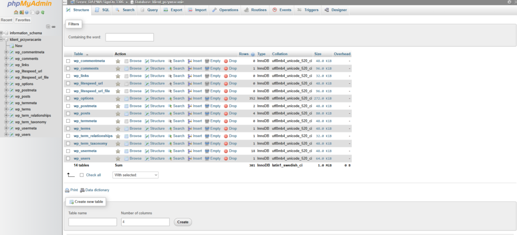 Zalogujesz się wówczas do PMA z dostępem do wszystkich baz danych na koncie. Aby uzyskać dostęp do konkretnej, po prostu kliknij w jej nazwę na liście po lewej stronie.