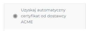 Oraz wybranie opcji uzyskania certyfikatu od wystawcy ACME